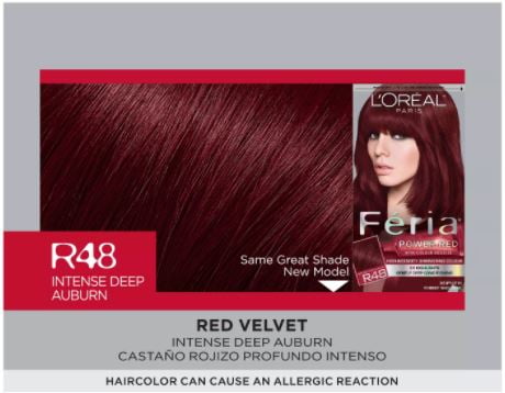 Amazon Com L Oreal Paris Feria Multi Faceted Shimmering Permanent Hair Color R48 Red Velvet Intense Deep Auburn Pack Of 1 Hair Dye Chemical Hair Dyes Beauty Personal Care